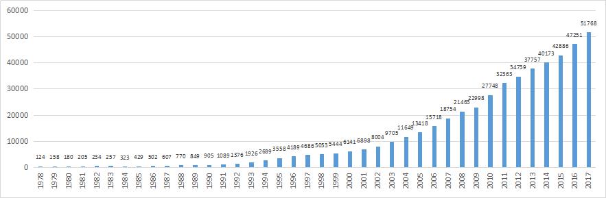 圖1 ???1978-2017年全省生產總值(億元)