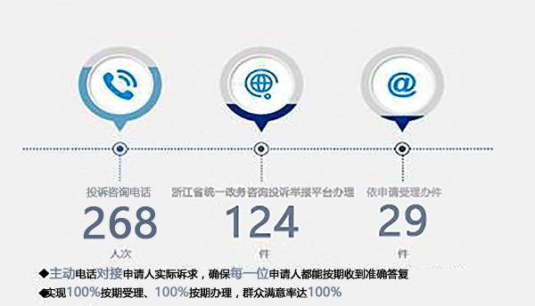 2019年,根據《中華人民共和國政府信息公開條例》和省政府統一要求,我局進一步規范了依申請公開和信訪件辦理流程,結合統計工作實際,設計了10類依申請公開答復示范文本。強化責任意識,在辦理過程中注重與申請人溝通,主動聯系了解其實際訴求,確保每一位申請人都能按期收到準確答復。全年接聽到投訴咨詢電話268人次,受理依申請公開29件,辦理浙江省統一政務咨詢投訴舉報平臺信訪和預處理件124件,實現100%按期受理、100%按期辦理,無一引發行政復議和行政訴訟,群眾滿意率達100%。