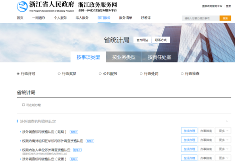 政務服務網浙江省統計局部門窗口