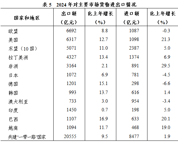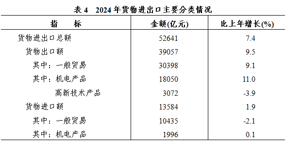 全年貨物進出口52641億元,比上年增長7.4%,其中出口和進口分別為39057和13584億元,分別增長9.5%和1.9%;規(guī)模分別居全國第三、第二和第五位,占全國份額分別為12.0%、15.3%和7.4%,進出口、出口占全國份額均比上年提高0.3個百分點。有進出口貿易的國別(地區(qū))達252個;對中東、非洲、東盟、拉美進出口分別增長3.2%、7.1%、9.0%和11.8%,合計拉動全省進出口增長3.4個百分點;對共建“一帶一路”國家進出口增長7.2%;對歐盟、美國進出口分別增長7.4%和13.9%。出口商品結構轉型升級,機電產品出口增長11.0%,占全省出口的46.2%。