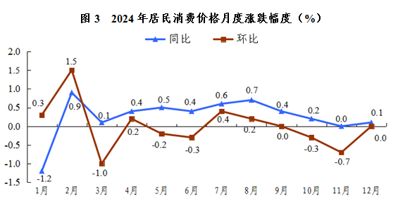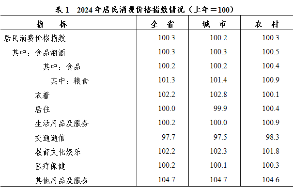 全年居民消費價格比上年上漲0.3%。其中,城市上漲0.2%,農村上漲0.3%;消費品價格持平,服務價格上漲0.6%。工業(yè)生產者出廠價格下降2.2%,工業(yè)生產者購進價格下降2.4%。